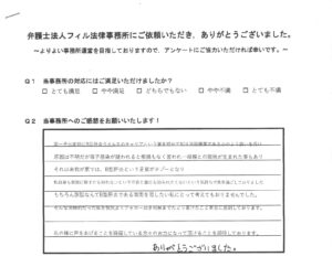 交通事故フィル法律事務所の特色は,まず丁寧な事です。そしてわかり易い事です。また親切な事です。 小さな事,細かい事にも相談に乗っていただきました。困った事がありましたら迷わずにご相談してみて下さい。 きっとあなたの期待に応えてくれると思います。 塚本先生ありがとうございました。 ...