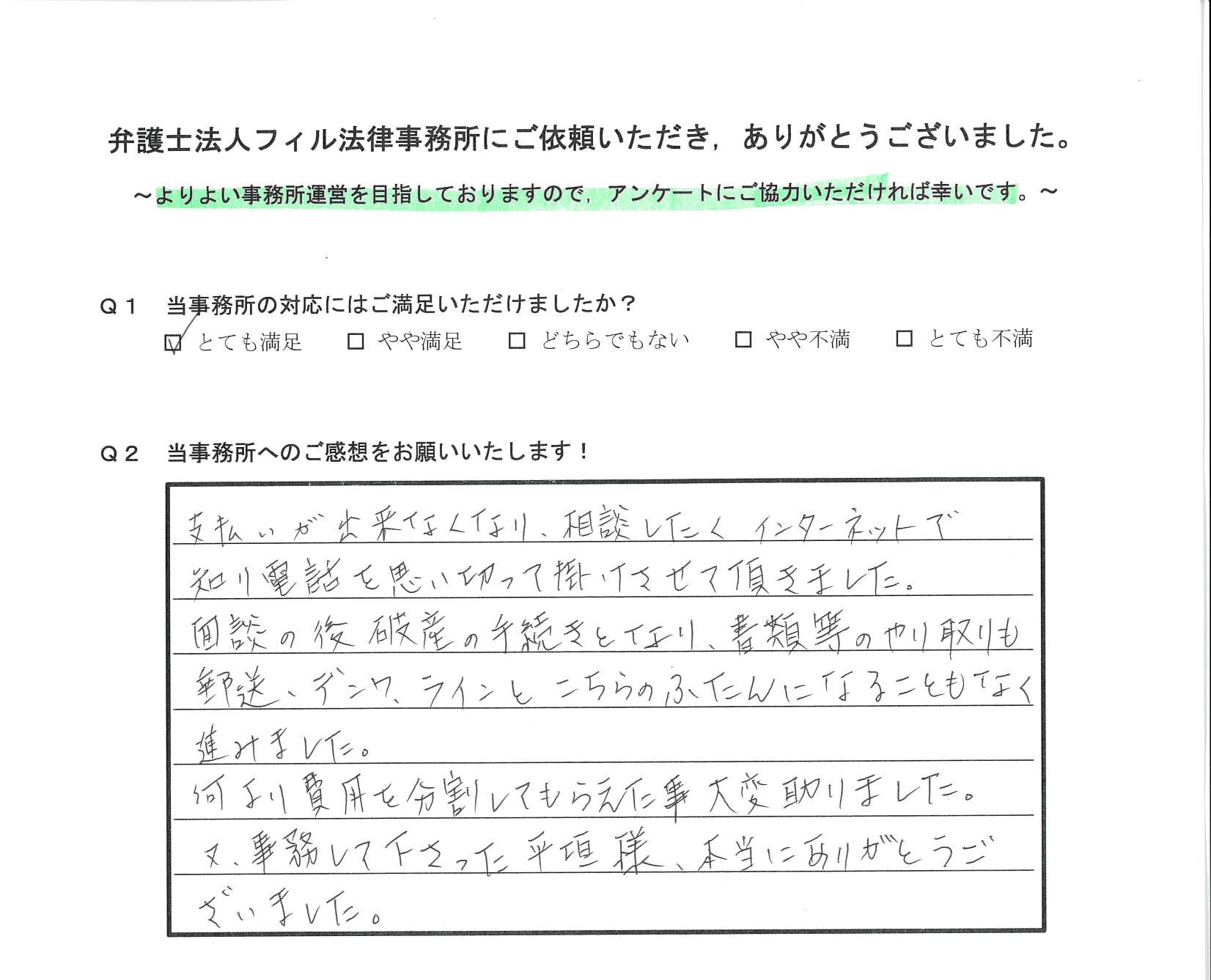 面談の後破産の手続きとなり、書類等のやり取りも郵送、デンワ、ラインとこちらのふたんになることもなく進みました。